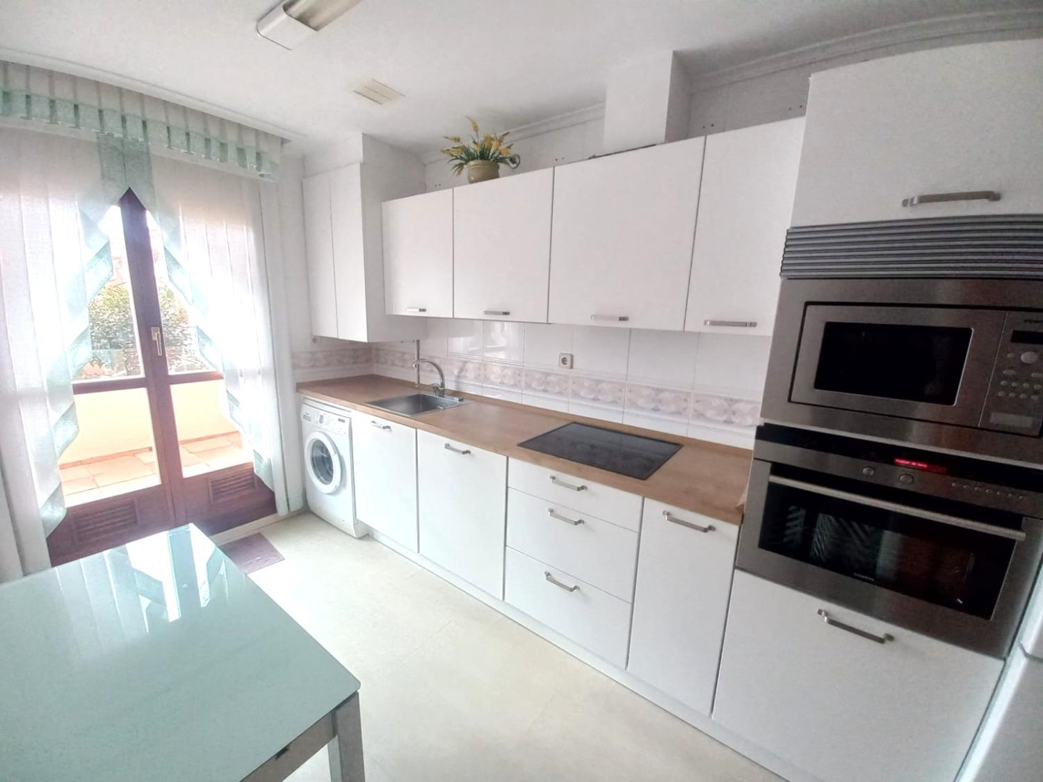 El inmueble cuenta con tres amplios dormitorios, el principal con baño y vestidor y salida directa a terraza. Los cuartos de baño están equipados uno con ducha y otro con bañera. Tiene dos armarios empotrados un amplio salón totalmente equipado y con ventilador en el techo.