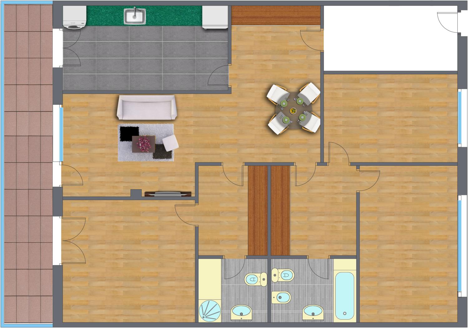 Las puertas son de roble, el suelo impecable de parque y las ventanas de madera tratada con doble acristalamiento lo que impide que se oiga ningún ruido del exterior.