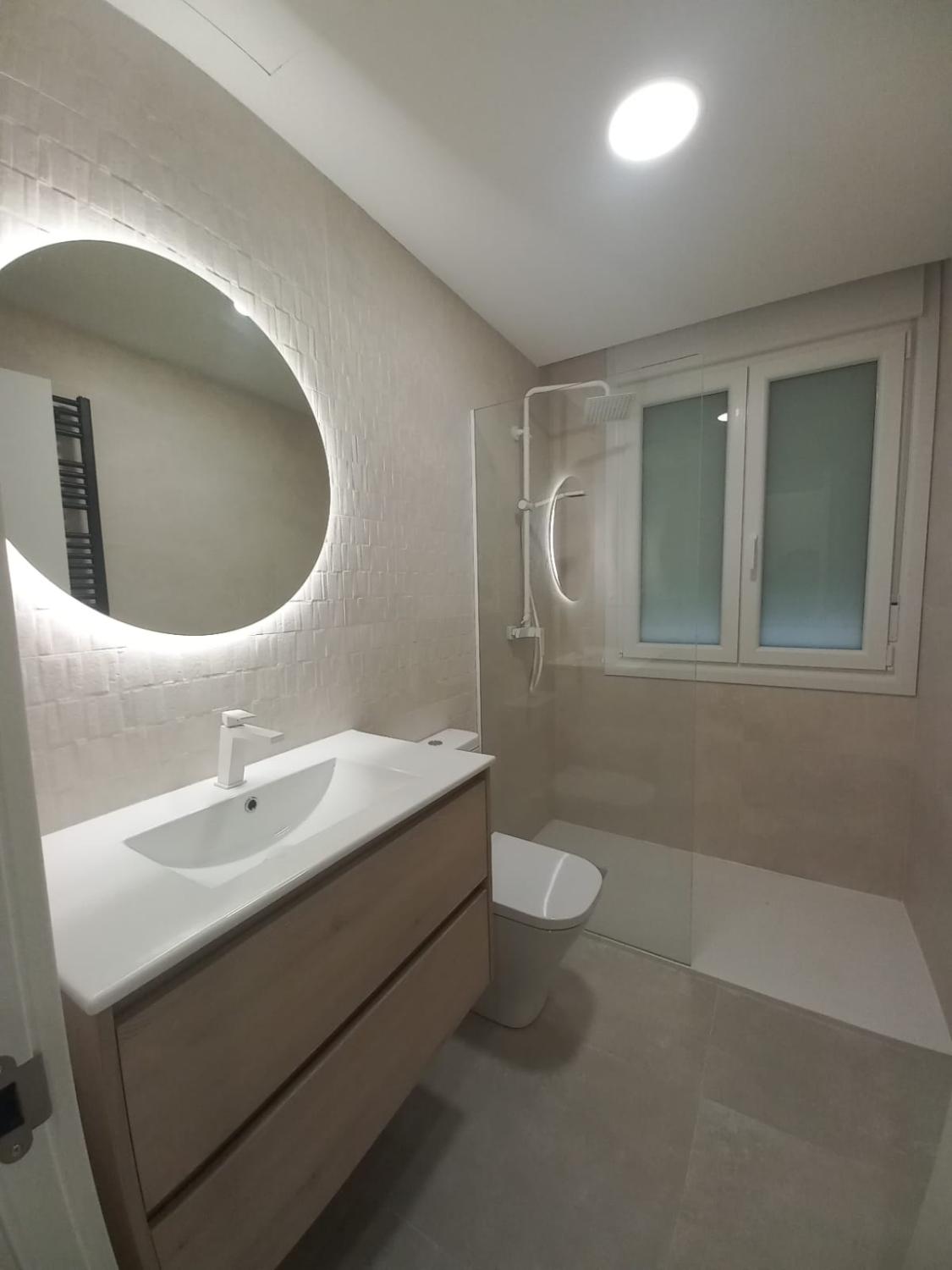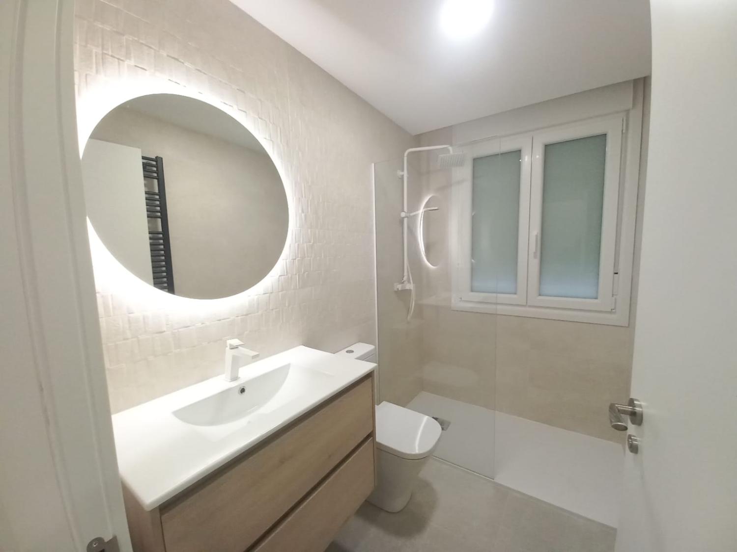El baño es amplio, dispone de ventana que te aporta luz natural y ventilación, dispone de una amplia ducha y modernos acabados.