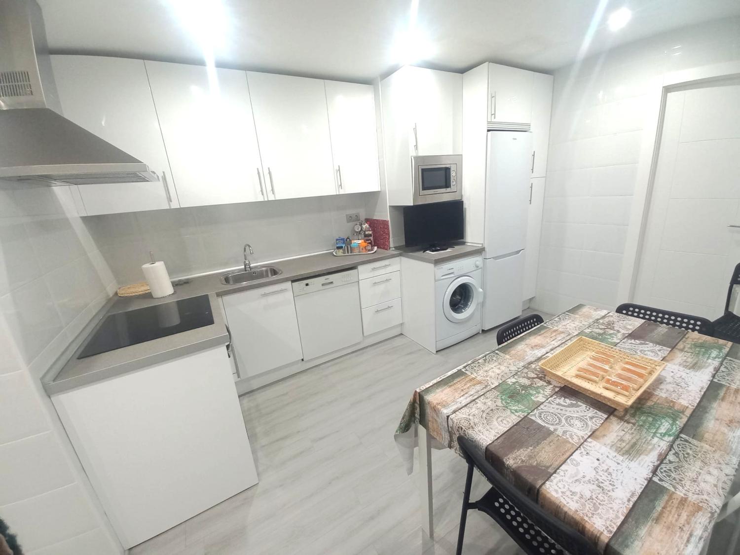 Una bonita cocina totalmente reformada y equipada con electrodomésticos en la cual tienes una amplia despensa que viene muy bien para almacenaje.