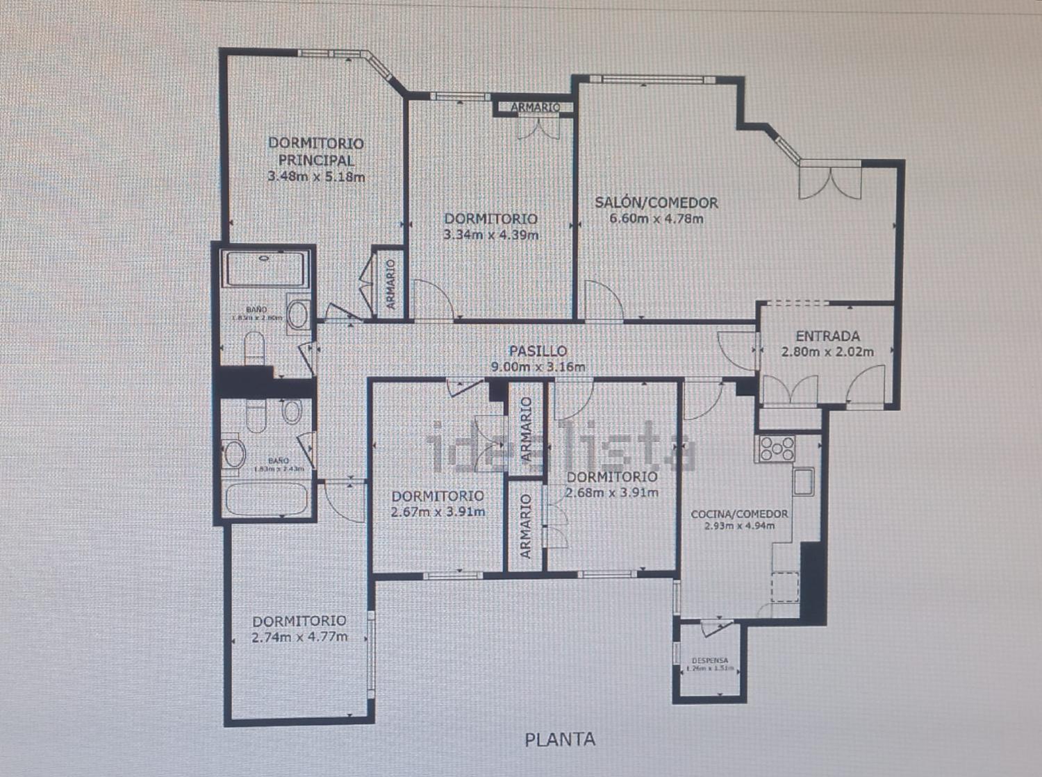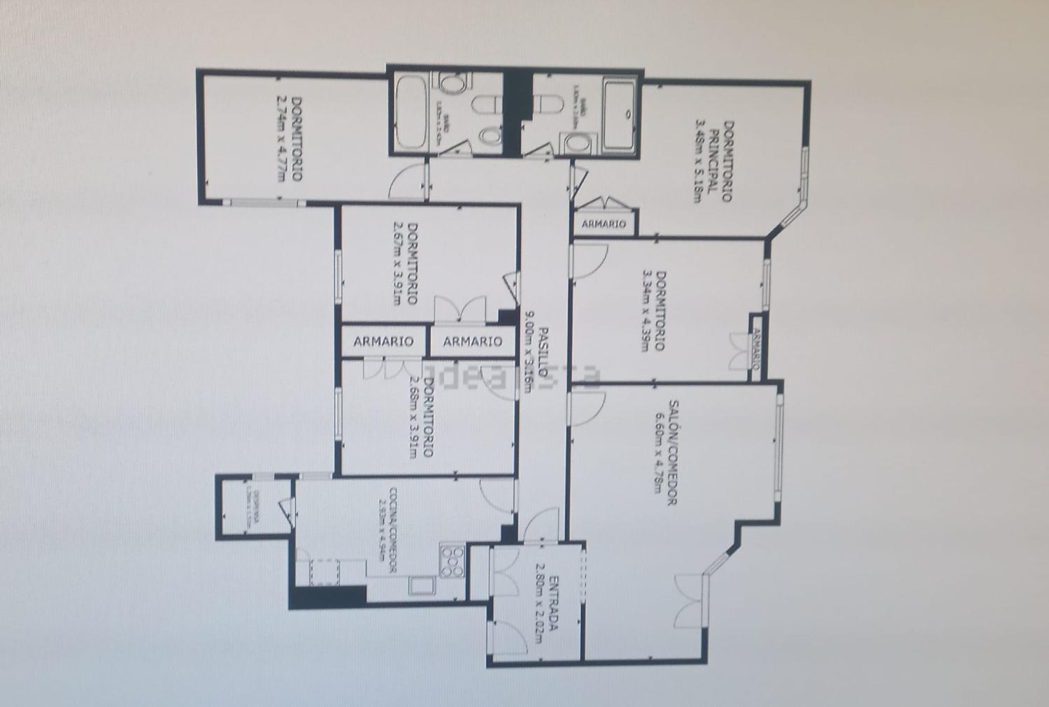 El piso cuenta con 130m2 útiles distribuidos en 5 amplios dormitorios, todos ellos con armarios empotrados, ideales para familias numerosas o simplemente para aquellos que necesiten espacios adicionales para trabajar. Dos cuartos de baño completos uno con bañera y otro con ducha.