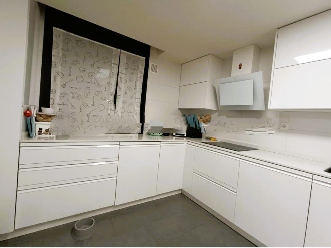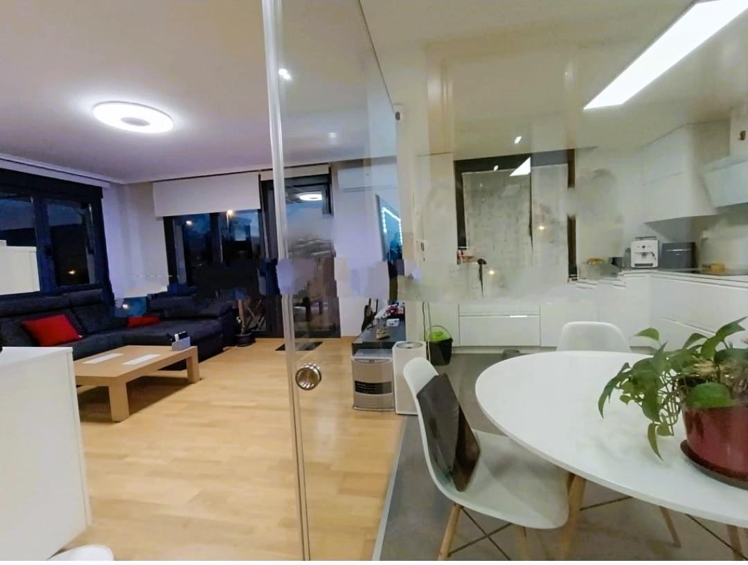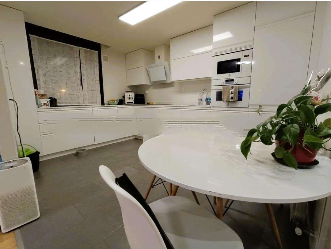 Cuenta con una cocina totalmente amueblada y equipada con electrodomésticos de alta gama ,abierta al salón acogedor y muy luminoso gracias a su orientación sur/ oeste y separados del resto de las estancias gracias a una gran cristalera corredera creando un espacio separado y funcional.