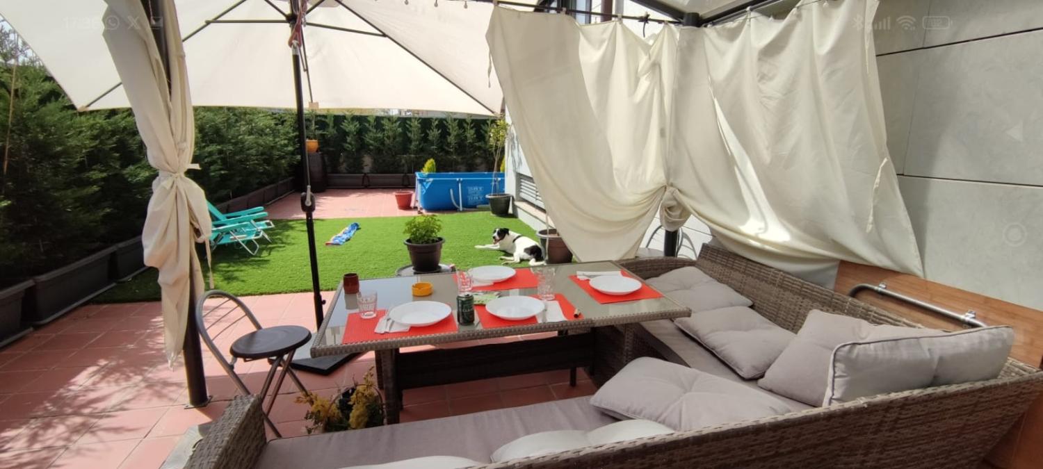 También cuenta con un balcón con salida desde el salón y que da paso a la gran terraza de 115m,tambien preparada y amueblada para que los momentos sean únicos.