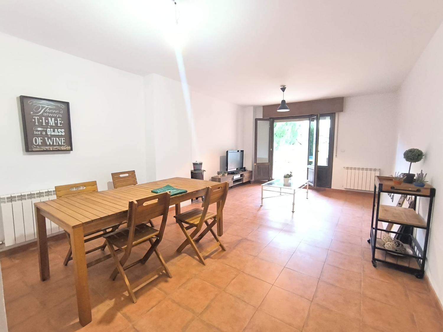 Tanto desde el salón como de una de las habitaciones ,se accede directamente al jardín.