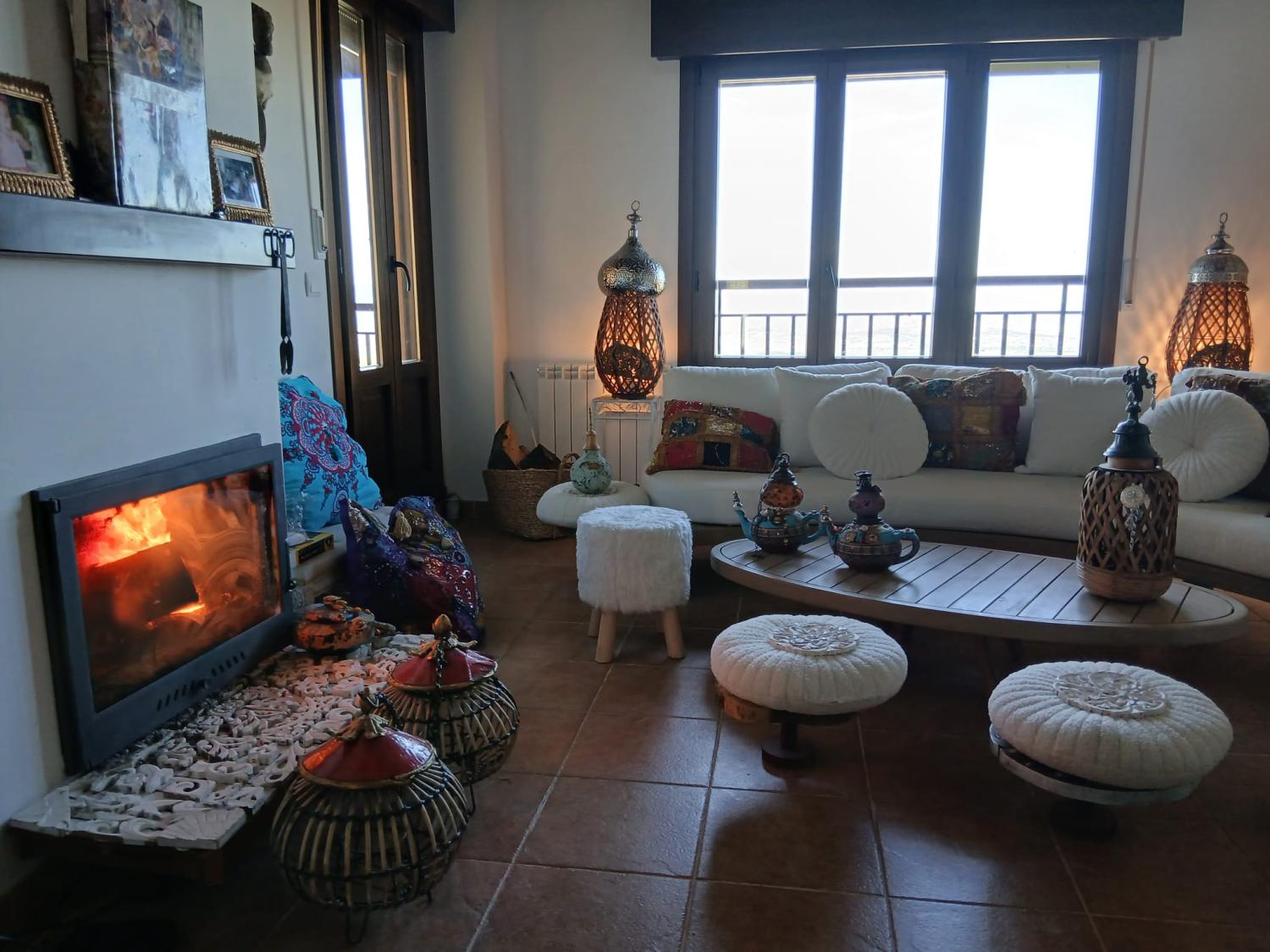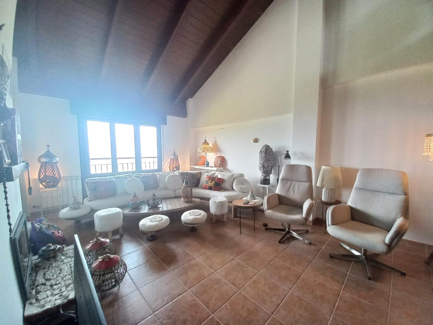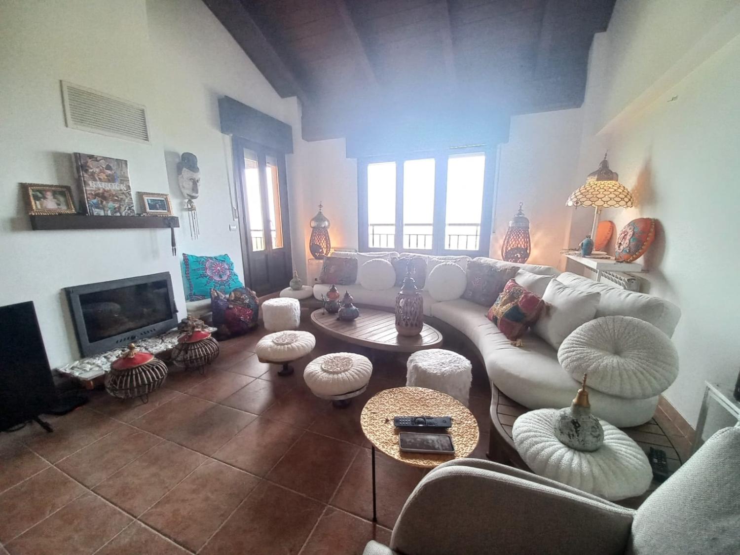 En la planta baja accedemos a un gran salón con chimenea,y su hermosa terraza, por sus ventanas entra una luz impresionante.