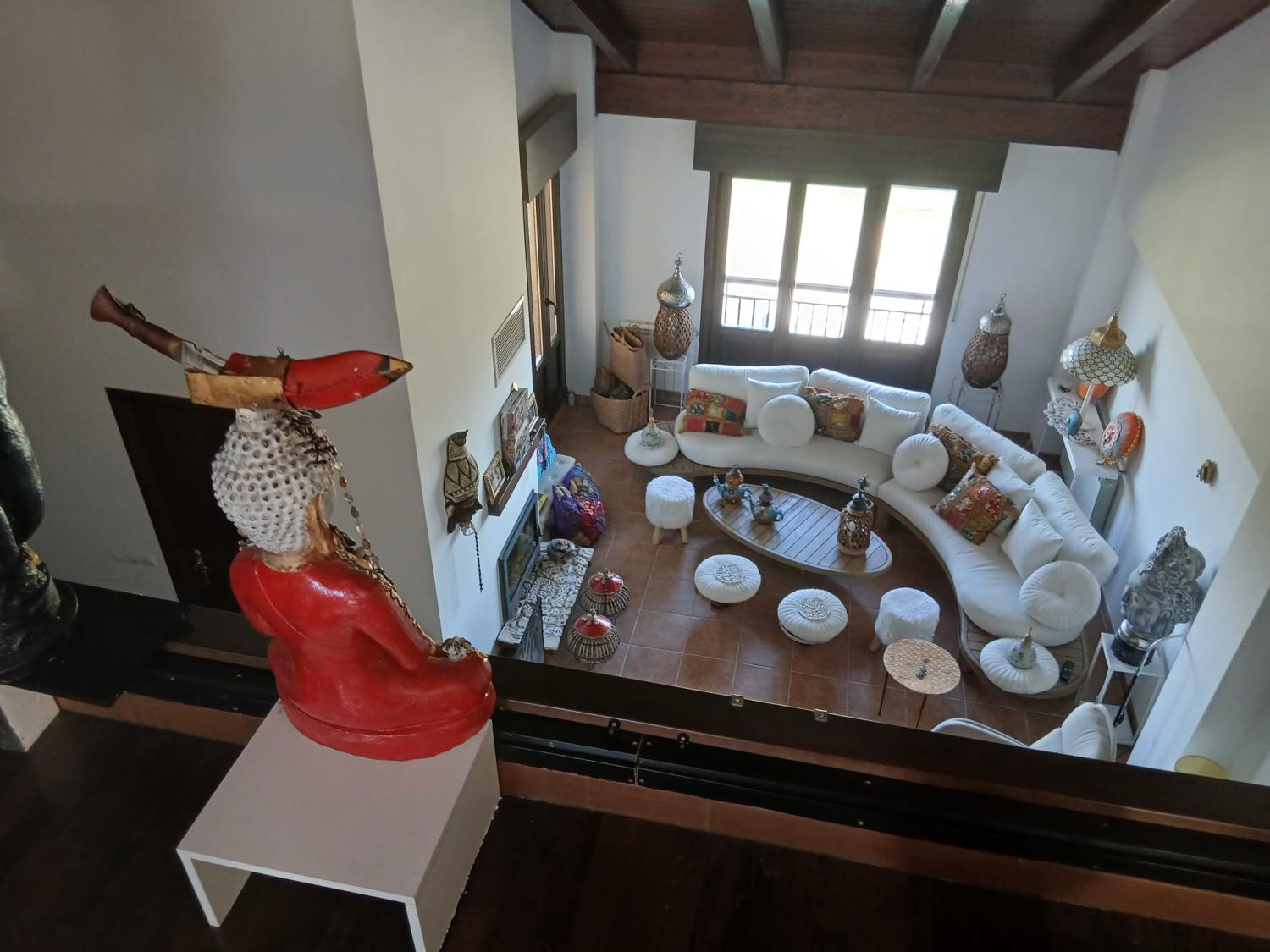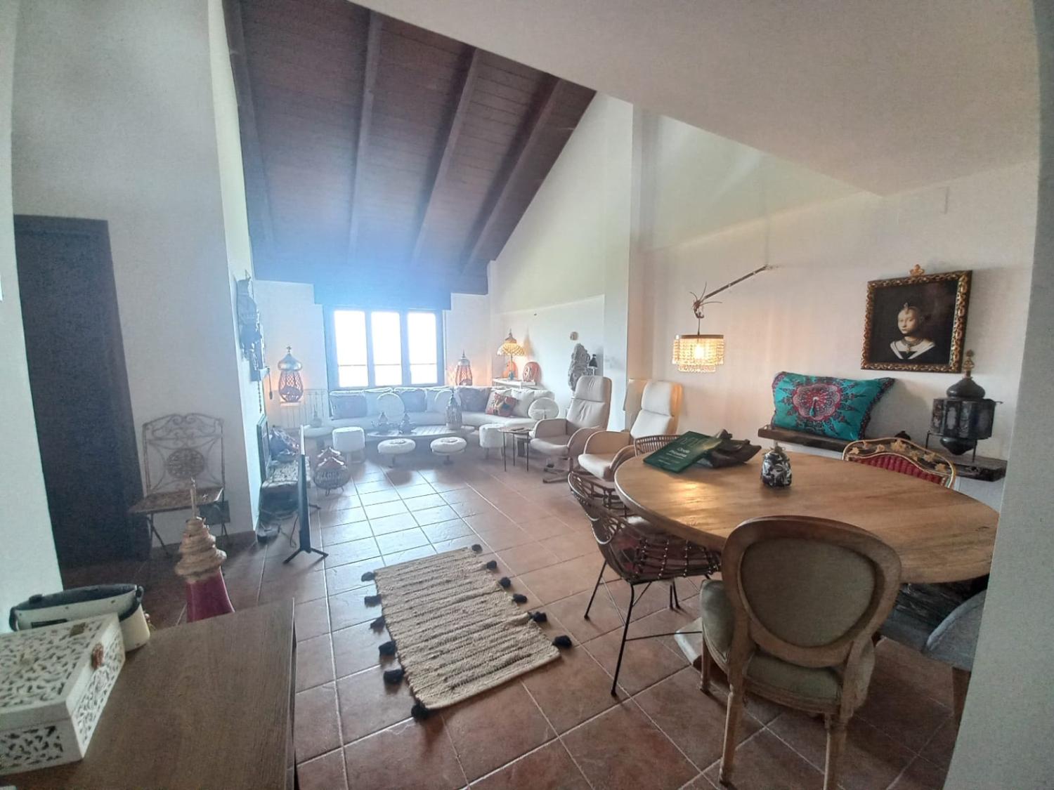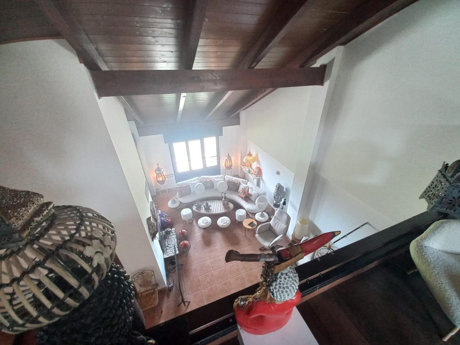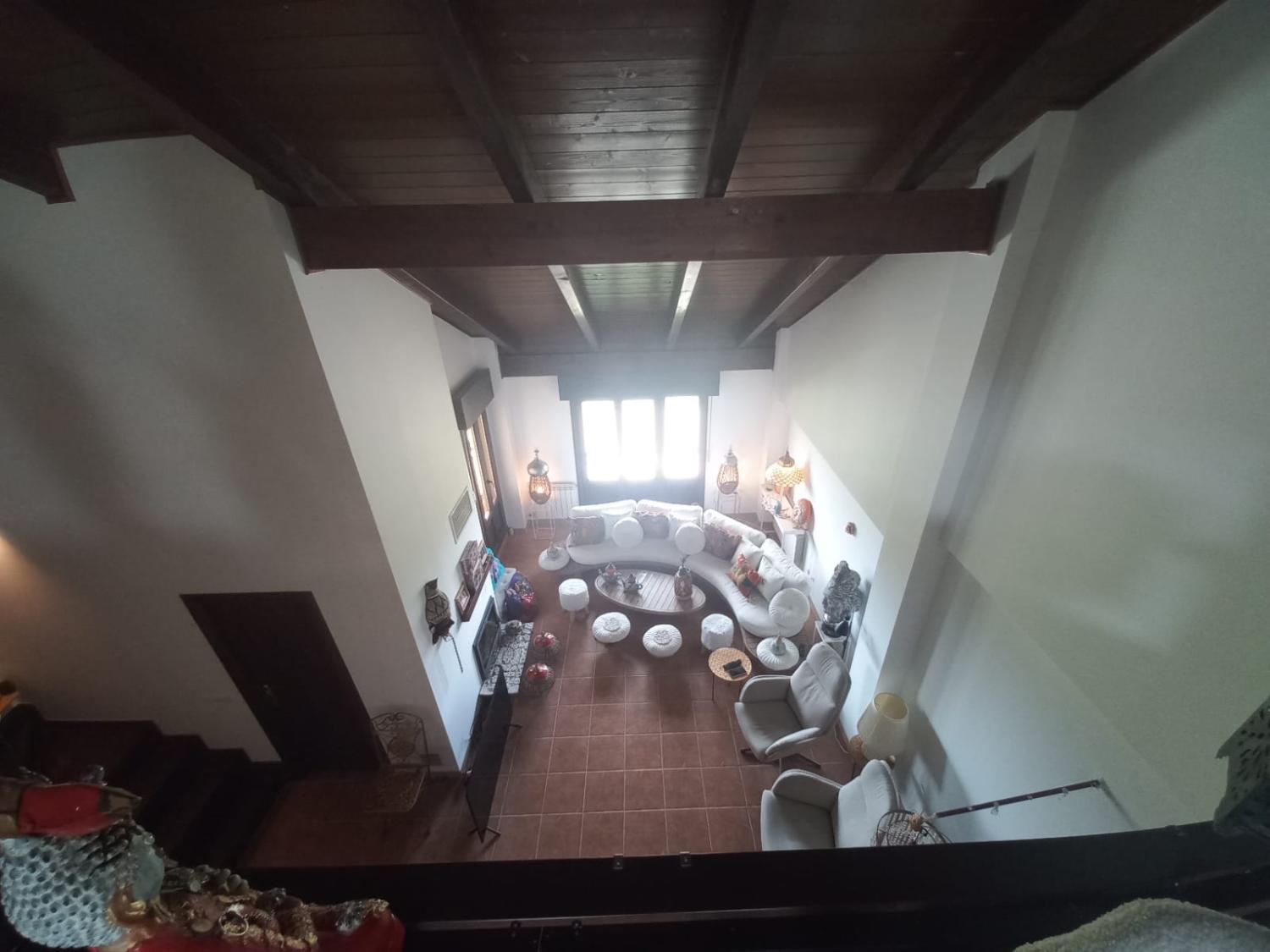 En la planta baja accedemos a un gran salón con chimenea,y su hermosa terraza, por sus ventanas entra una luz impresionante.