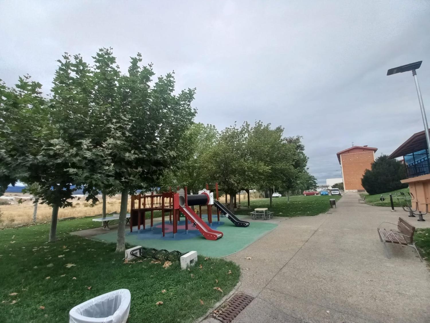 Rodeada de parques y con muchas plazas de aparcamiento.